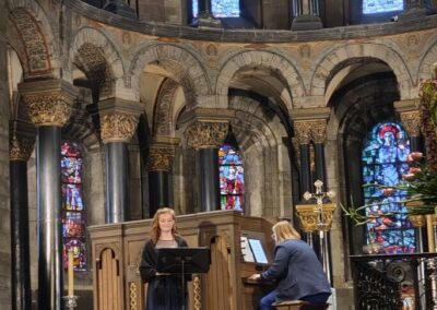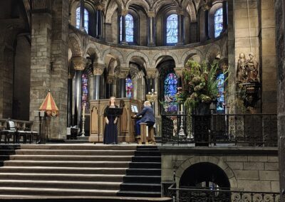 Het muzikale programma van de Vriendendag was een schitterend hoogtepunt. Organist Poppeia Berden verzorgde een indrukwekkend orgelrecital op het monumentale instrument van de basiliek. Sopraan Margarita Celmina vulde het programma met warme, heldere zang die perfect aansloot bij de akoestiek en de serene sfeer van de ruimte. Het samenspel tussen orgel en zang kreeg veel lof van het publiek en maakte de middag onvergetelijk.